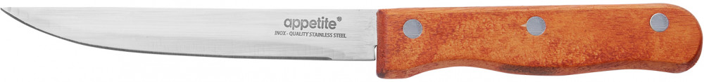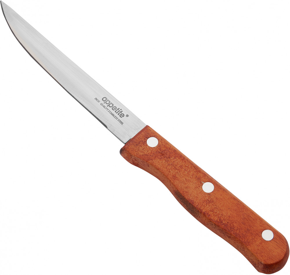Appetite Нож для нарезки «Кантри»В данный момент этот товар отсутствует в продаже. Возможно, у нас найдется аналогичный или похожий товар здесь. Серия: Кантри Нож «Кантри» — универсальный кухонный инструмент, который замечательно справляется с нарезкой овощей и зелени, но также может и нарезать мясо или рыбу ровными кусочками. Лезвие выполнено из высококачественной стали, что позволит сохранить длительный период эксплуатации. Благодаря специальной выемке на рукоятке нож фиксируются в руке и не скользит. Не требует особых условий хранения, устойчив солнечного свету и перепадам температур. |