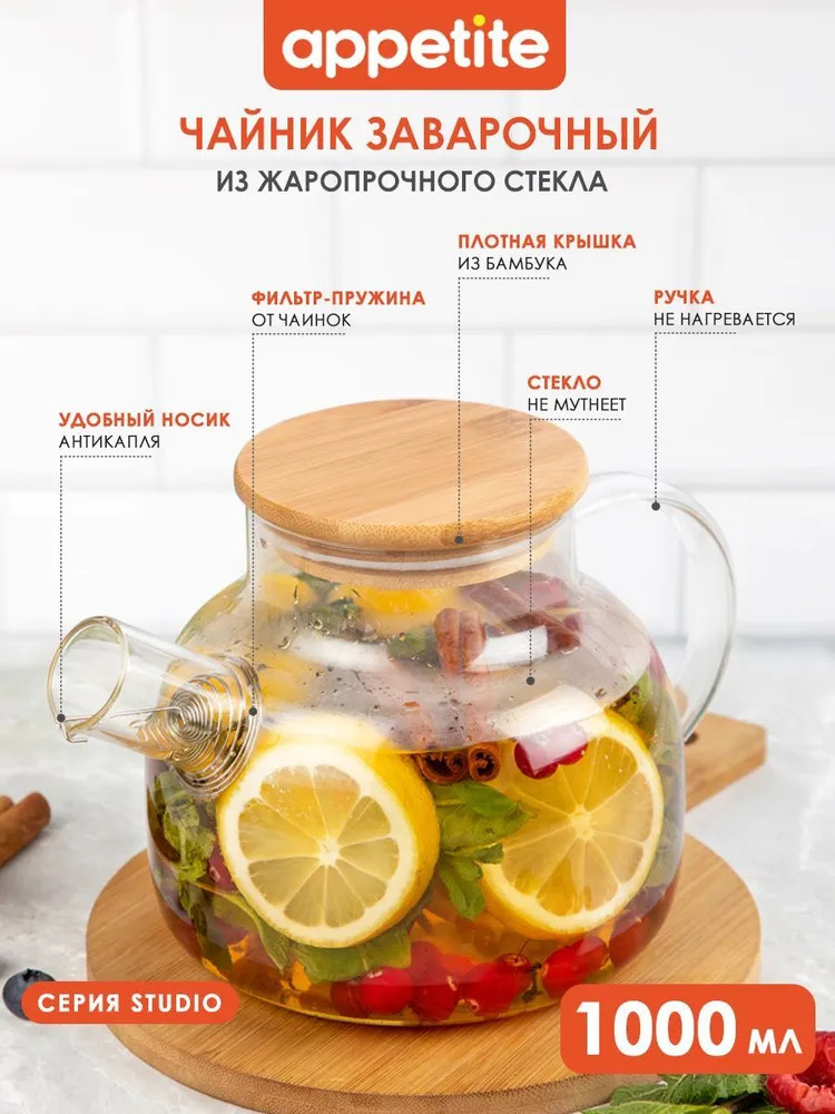 Appetite Чайник заварочный «Studio»удобный красивый хорошее качество легко моется В данный момент этот товар отсутствует в продаже. Возможно, у нас найдется аналогичный или похожий товар здесь. Серия: Studio Чайник предназначен для заваривания традиционного, травяного и фруктового чая. Интересный стиль и оптимальный объем делают чайник удобным и оригинальный аксессуаром, который прекрасно подходит как для ежедневного использования, так и для особых случаев. |