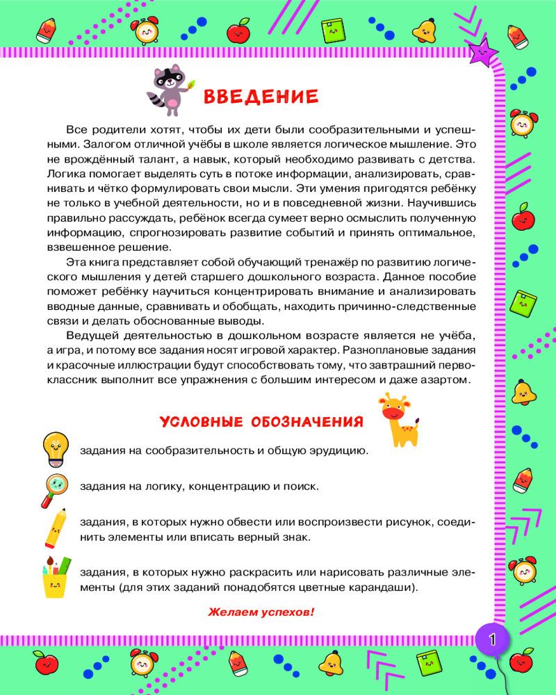 💳 Оплатить за товар можно при получении 🇰🇿 Есть бесплатная доставка по Казахстану от 1 дня 🎁 Копите бонусы с каждой покупки Серия: Я готов к школе! Логическое мышление — это не врождённый талант, а навык, который необходимо развивать с детства. Умея правильно рассуждать, ребёнок всегда сумеет выделить в потоке информации всё самое важное, осмыслить это, спрогнозировать последствия и принять взвешенное, логичное решение. А поскольку в дошкольном возрасте ведущей деятельностью является не учёба, а игра, то все задания носят игровой характер и красочно проиллюстрированы. Внимательный ребёнок быстро ухватит суть заданий и найдёт рациональный способ их выполнения. В результате он научится анализировать вводные данные, сравнивать и обобщать, находить причинно-следственные связи и делать обоснованные выводы. |