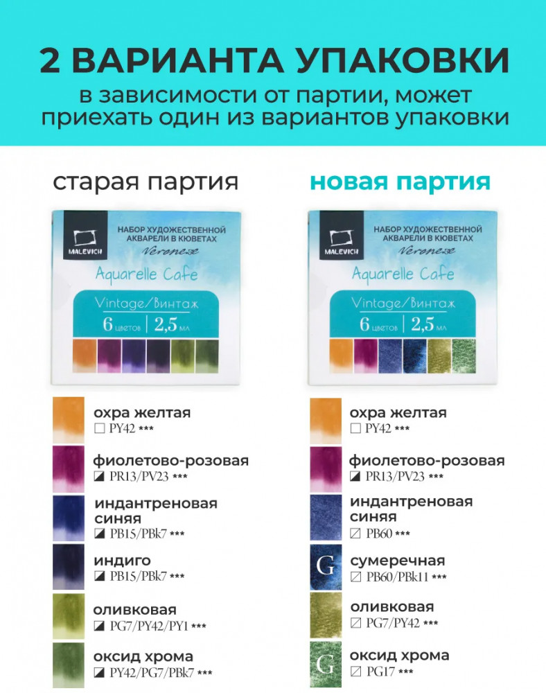 МалевичЪ Набор красок акварельных «Винтаж»-20% +80