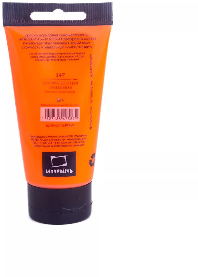 МалевичЪ Краска флуоресцентная акриловая, 147 оранжевая