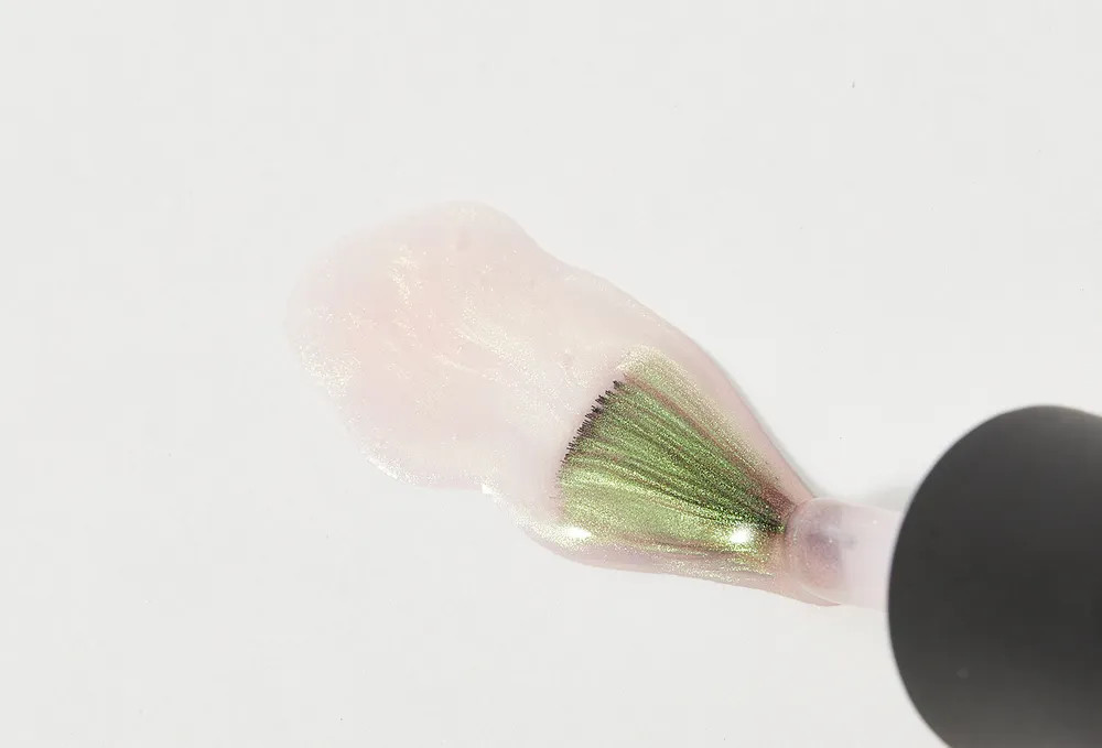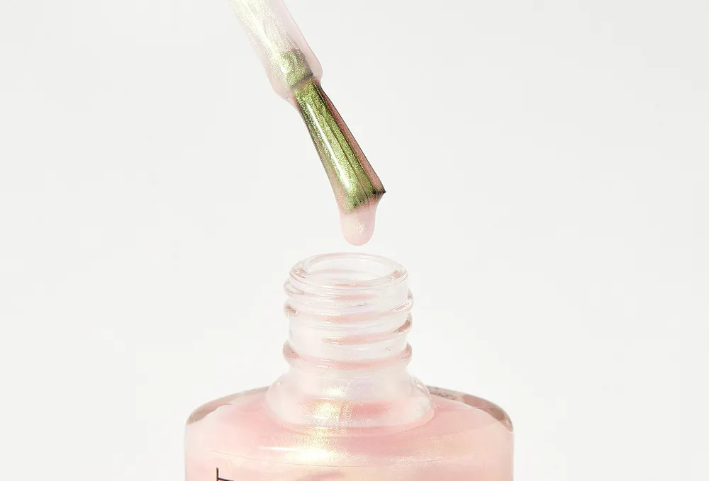 Красиво блестит, но какой-то полупрозрачный даже на два слоя. Подойдет как верхний слой на нормальный лак, просто придать оттенок и блеск.