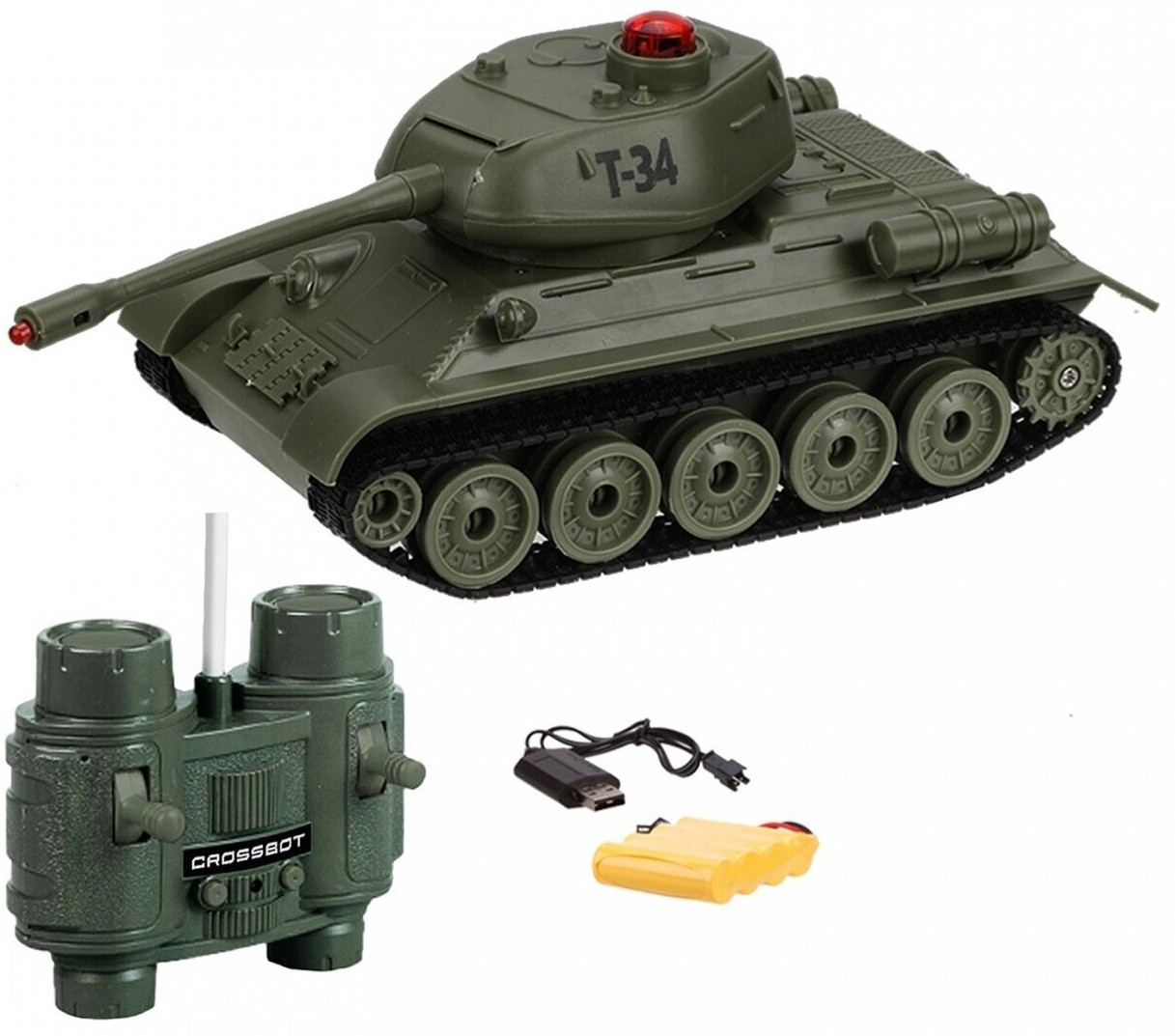 Crossbot Танк радиоуправляемый «Т-34»В данный момент этот товар отсутствует в продаже. Возможно, у нас найдется аналогичный или похожий товар здесь. Радиоуправляемая модель танка Т-34 (СССР) с реалистичными звуковыми и световыми эффектами при стрельбе и визуальными эффектами (отдача при выстреле) выполнена в масштабе 1:32. Танк осуществляет движение вперёд и назад, поворачивает вправо и влево, преодолевает подъёмы под углом 45°, совершает круговое вращение на месте и поворот башни вправо-влево на 320°. В игрушке предусмотрены демонстрационный режим и автоотключение. Уникальная функция: танк оснащён функцией боя. |