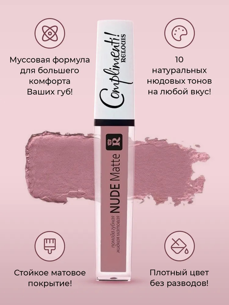 RELOUIS Помада для губ жидкая матовая «Nude Matte», тон 28 Бежево-розовый