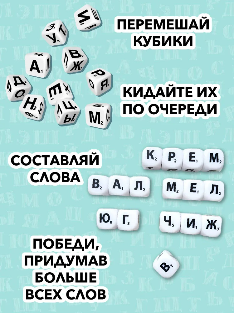 💳 Оплатить за товар можно при получении 🇰🇿 Есть бесплатная доставка по Казахстану от 1 дня 🎁 Копите бонусы с каждой покупки Серия: Кубики для умников Настольная игра для малышей «Словодел» — это возможность в увлекательной форме освоить буквы русского алфавита и научиться составлять слова. Игра способствует развитию навыков речи, расширяет словарный запас. |