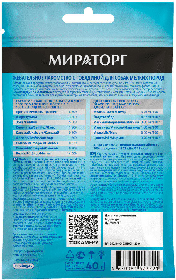 Мираторг Лакомство для собак мелких пород c говядиной+17 вкусные малый размер эластичность без плесени
