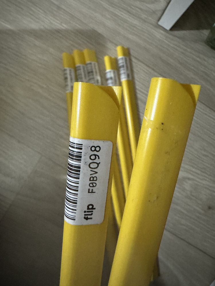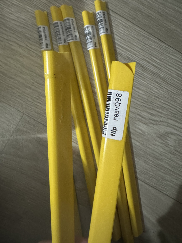 Флиптің шрихкодтары. Осындай скрепкошинаның 8 данасын алған едім, әрқайсысына шрихкод жапсырылған және оларды алу оңай емес, желімнің ізі қалып қояды. Сосын әрқайсысынан алып отыру, желімін кетіру біршама уақытты талап етеді.