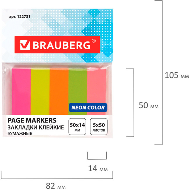Brauberg Набор закладок бумажныхяркие цвета удобные в использовании слабый клей В данный момент этот товар отсутствует в продаже. Возможно, у нас найдется аналогичный или похожий товар здесь. Яркие бумажные закладки акцентируют внимание на важных страницах книги, журнала, каталога. Набор бумажных закладок пяти неоновых цветов размером 5×1,4 см состоит из 250 листов, по 50 закладок каждого цвета. Клейкий слой — 22 Н/м. Легко клеятся к любой поверхности и не оставляют следов. Материал закладок позволяет делать надписи ручкой и карандашом. |