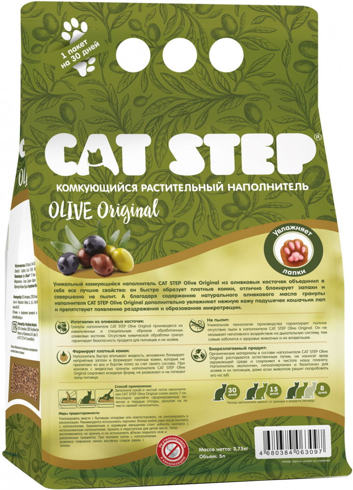 Cat Step Наполнитель для кошачьего туалета растительный комкующийся «Olive Original»-20% +111