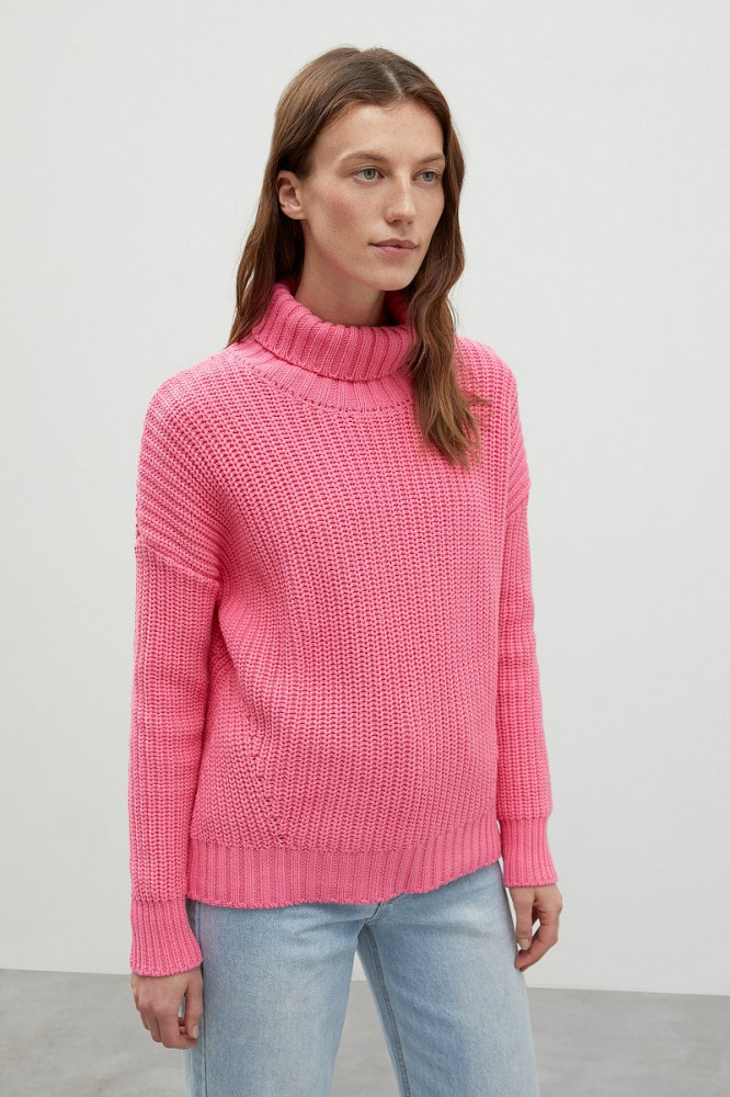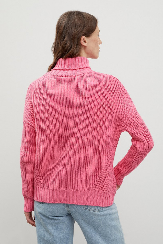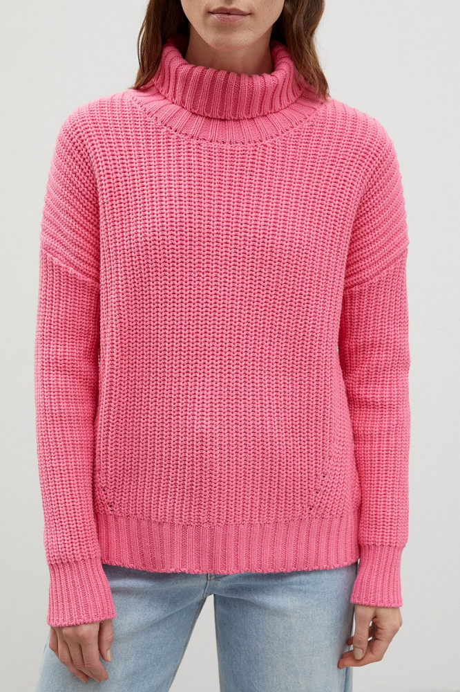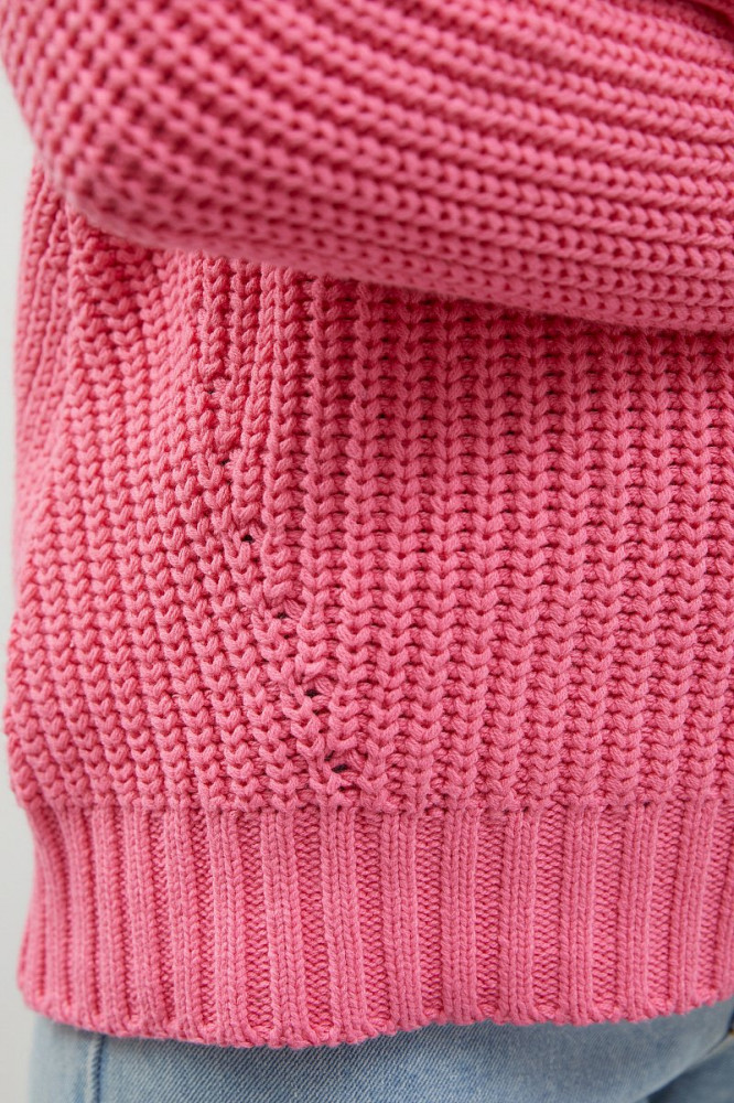 Очень красивый розовый цвет. На 46р заказала s44, в итоге оказался широкий, конкретный оверсайз. Вязка объёмная.