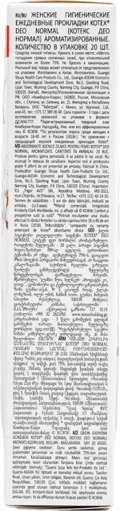 Kotex Прокладки женские «Deo Normal Liners»+6