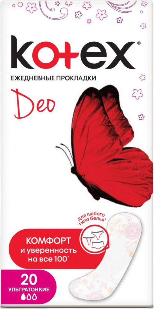 Kotex Прокладки женские «Deo Ultraslim flat»В данный момент этот товар отсутствует в продаже. Возможно, у нас найдется аналогичный или похожий товар здесь. Ежедневные прокладки Kotex Super Slim (ультратонкие) помогают чувствовать себя увереннее, что особенно важно в условиях активного ритма жизни. Тонкие (менее 1 мм толщиной) и эластичные. Дышащий внешний слой обеспечивает комфорт и гигиену, сохраняя ощущение чистоты и свежести. Без ароматизаторов. Благодаря гибким краешкам подходят для разного типа белья. Оригинальное тиснение по краям прокладки препятствует ее расслоению |