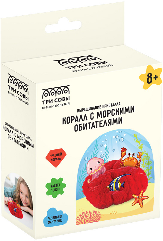 Набор для выращивания кристаллов познакомит вашего ребенка с химическими процессами, поможет развить любознательность и позволит самостоятельно поставить первый научный эксперимент! Подготовка опыта не займет много времени и не потребует усилий. Всего за один день у вас вырастет прекрасный кристалл в форме коралла, который ребенок сможет украсить морскими обитателями из набора.