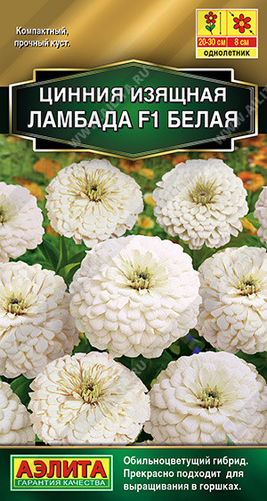 Аэлита Цинния «Ламбада F1 белая»+19 качество нет шарика нет удобрений