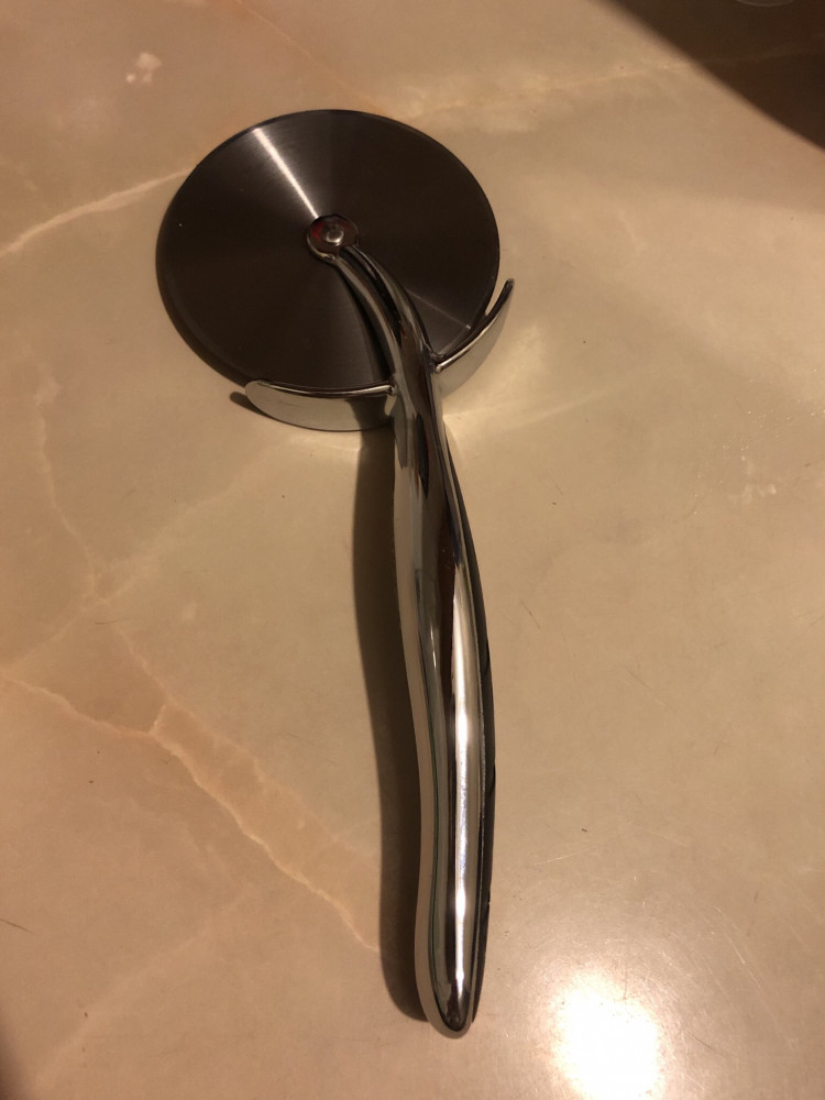 Резак для пиццы Vantage изготовлен из цинкового сплава с резиновыми вставками на ручках, приятная внешне и восхищающая функциональностью модель.