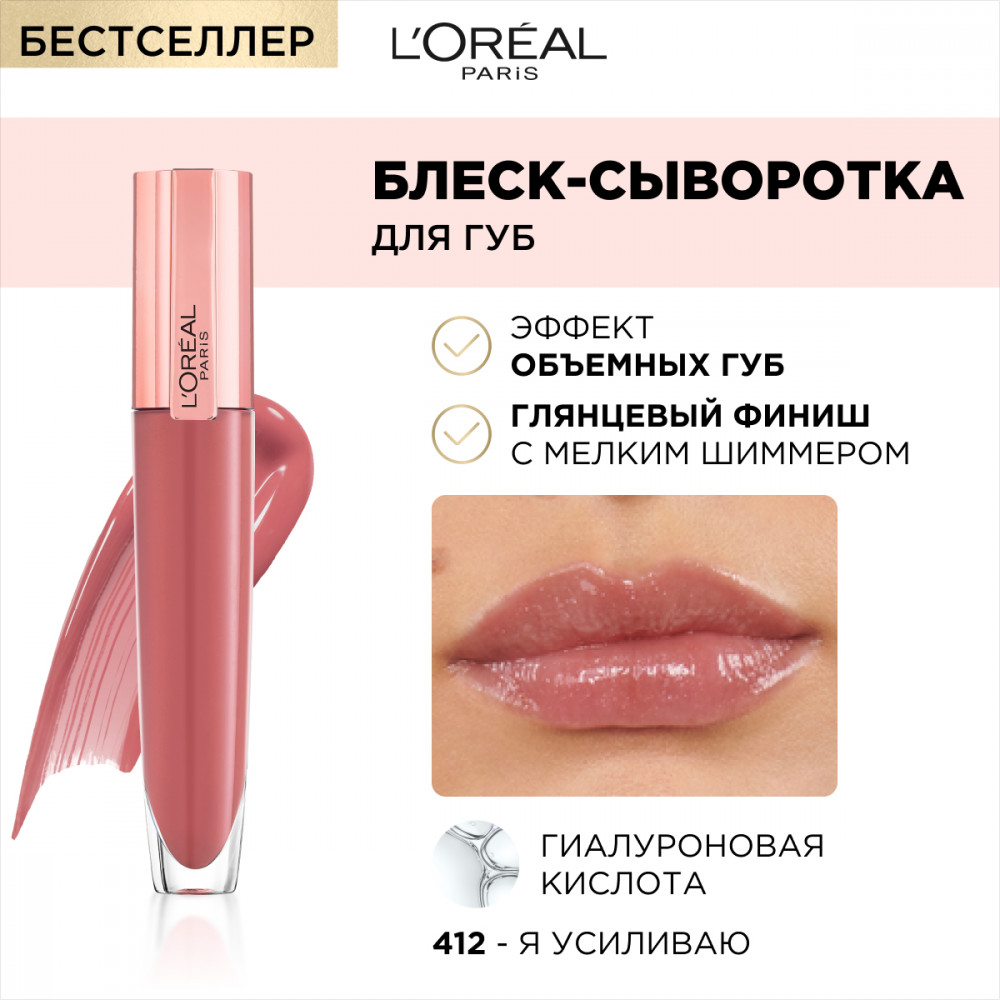 L'Oreal Paris Блеск-сыворотка для губ «Paradise», оттенок 412 Я усиливаю