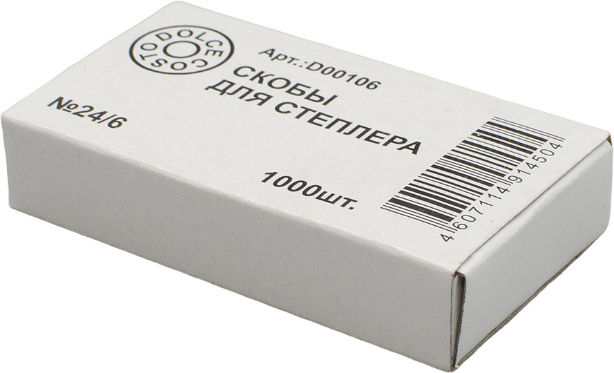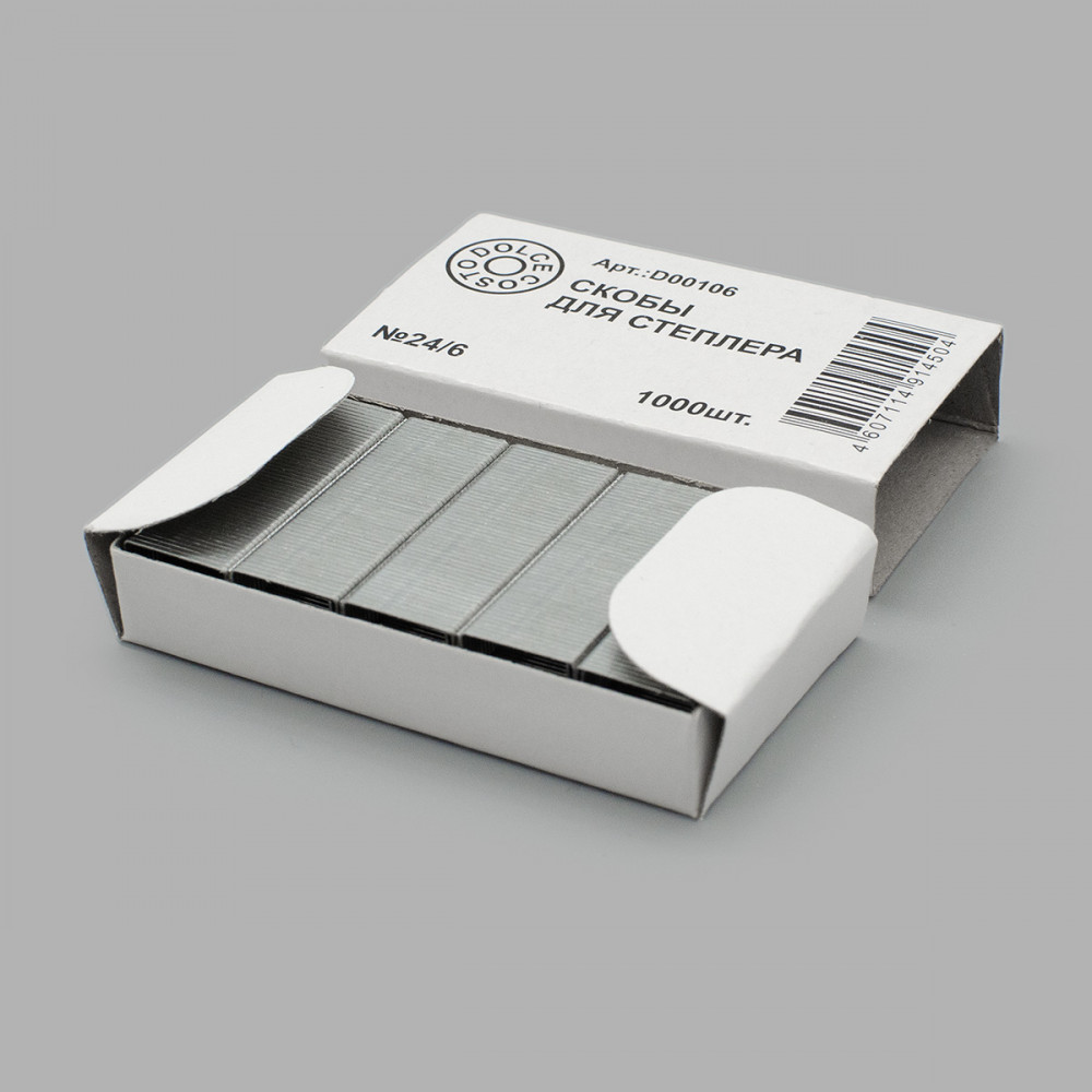 Скобы № 24/6 Dolce Costo изготовлены из оцинкованной стали, которая устойчива к коррозии. Используются как расходный материал, подходят для степлеров со сшивающей способностью до 25 листов стандартной офсетной бумаги плотностью 80 г/м2. |