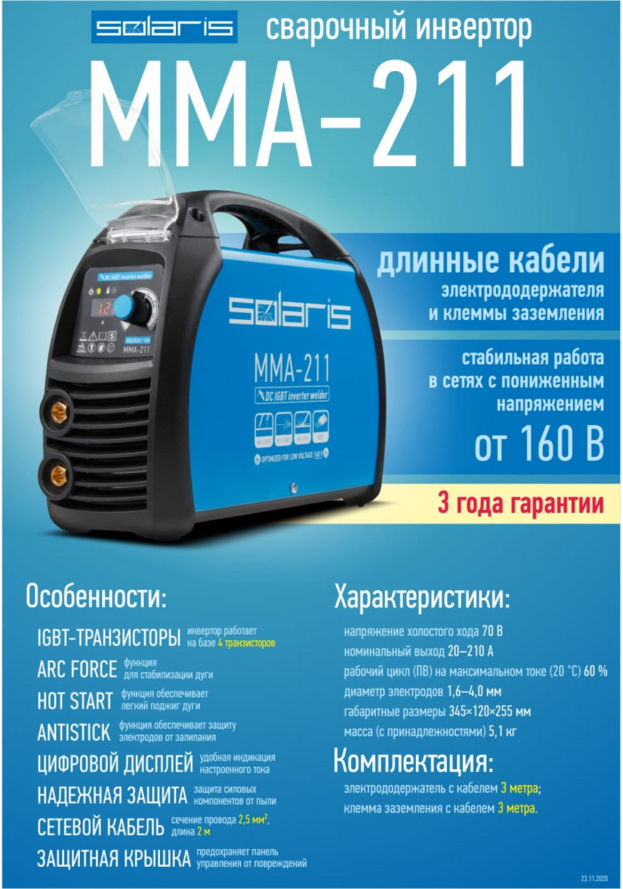 SOLARIS Инвертор сварочный Solaris MMA-21+2148
