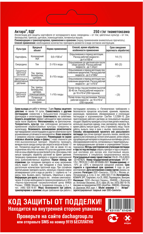 Expert Garden Средство от насекомых-вредителей «Актара»эффективность широкий спектр против белокрылки не повреждает растения удобен в применении