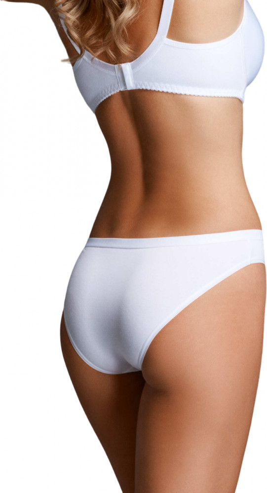 Трусы женские слип со средней линией талии. Открытая линия бедра,узкая боковая деталь. Комфортные хлопковые трусы для базового бельевого гардероба. Верхний срез обработан мягкой тактильной широкой тесьмой. Нижние срезы с плоскими обработками узкой деликатной тесьмой.
