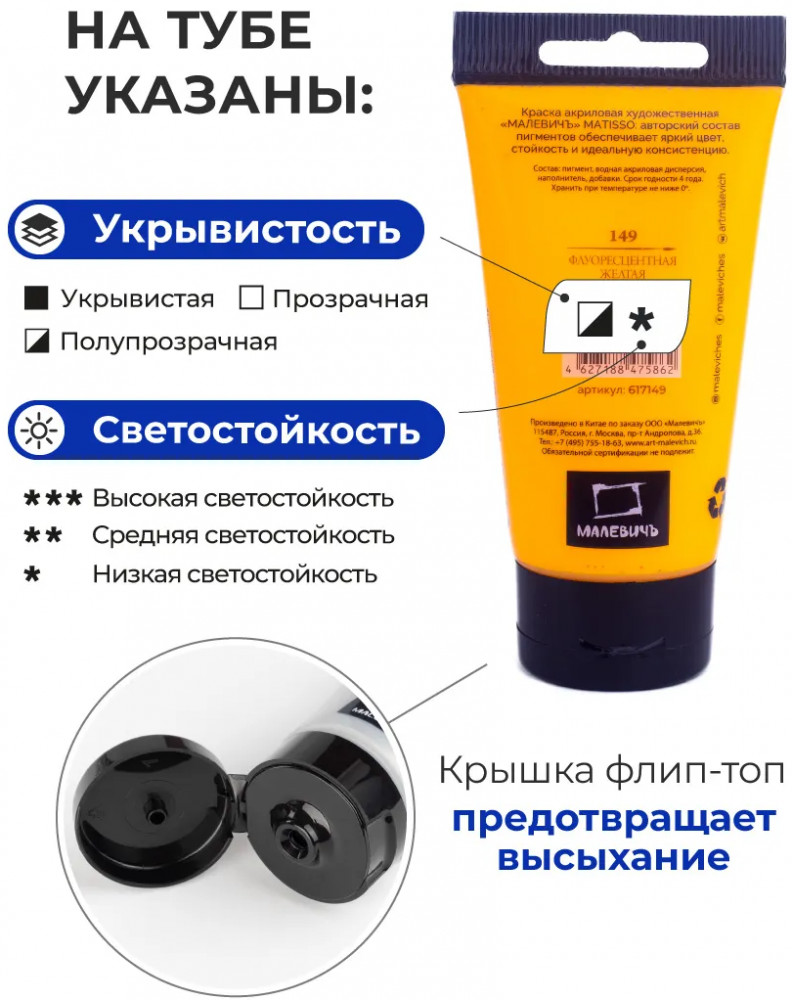 МалевичЪ Краска флуоресцентная акриловая, 149 жёлтая