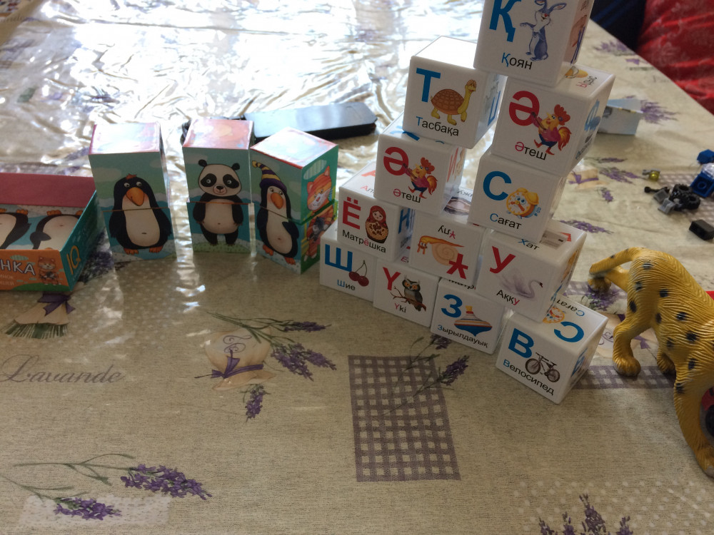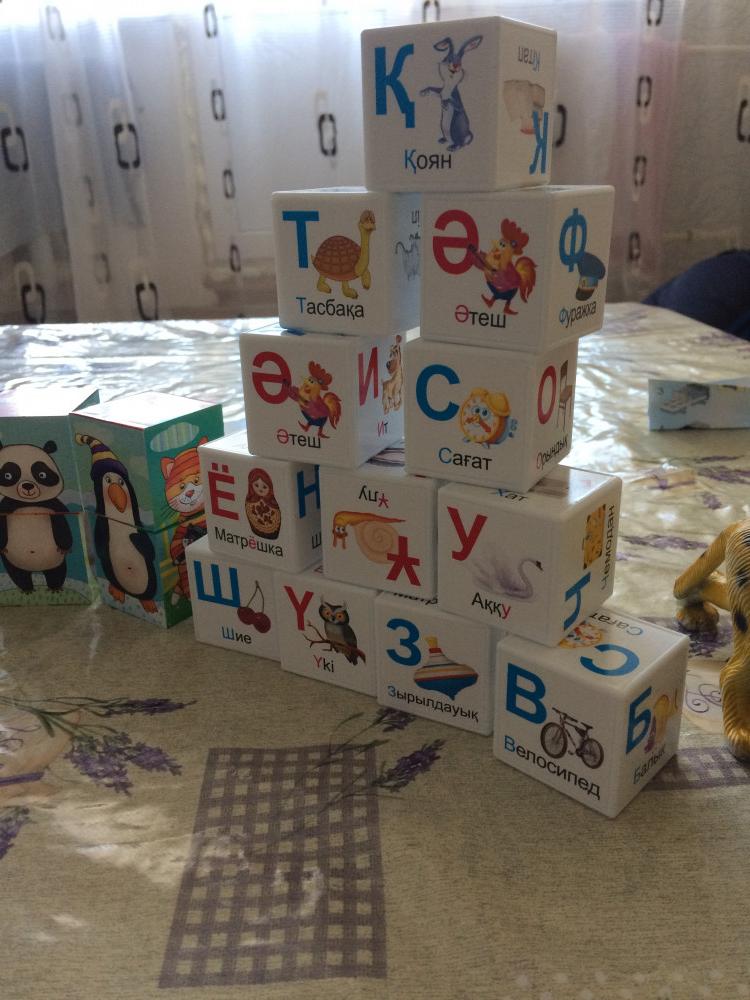 Kубики маленькие, рисунки и буквы на казахском это очень радует, качественные, нравится