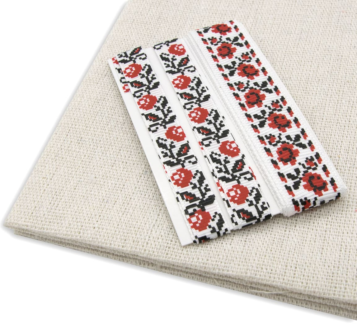 Лоскут хлопчатобумажной ткани с репсовой лентой — основа для ваших поделок. Лента и ткань идеально сочетаются между собой по цвету и рисунку.