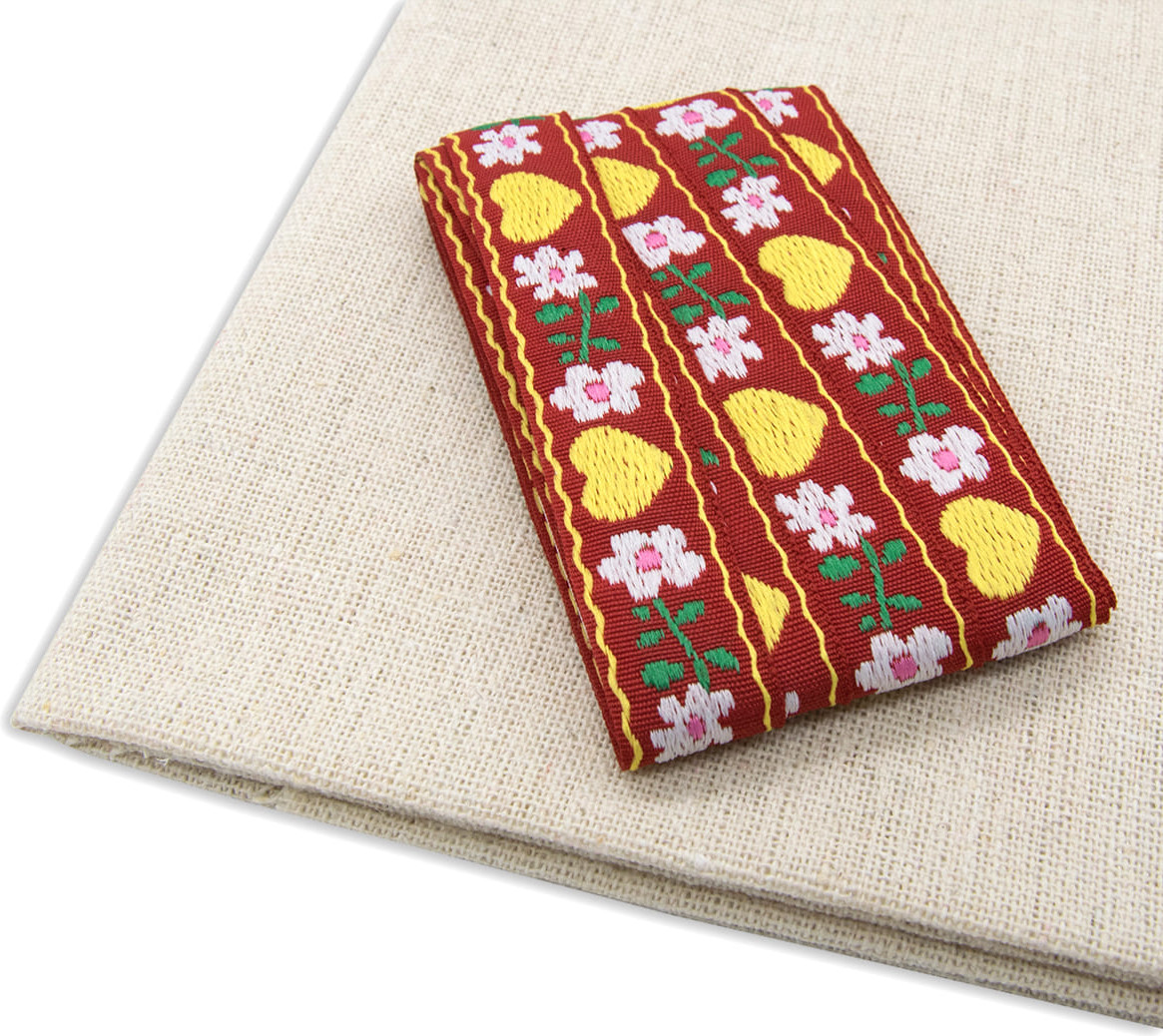 Лоскут хлопчатобумажной ткани с жаккардовой тесьмой — основа для ваших поделок. Лента и ткань идеально сочетаются между собой по цвету и рисунку.