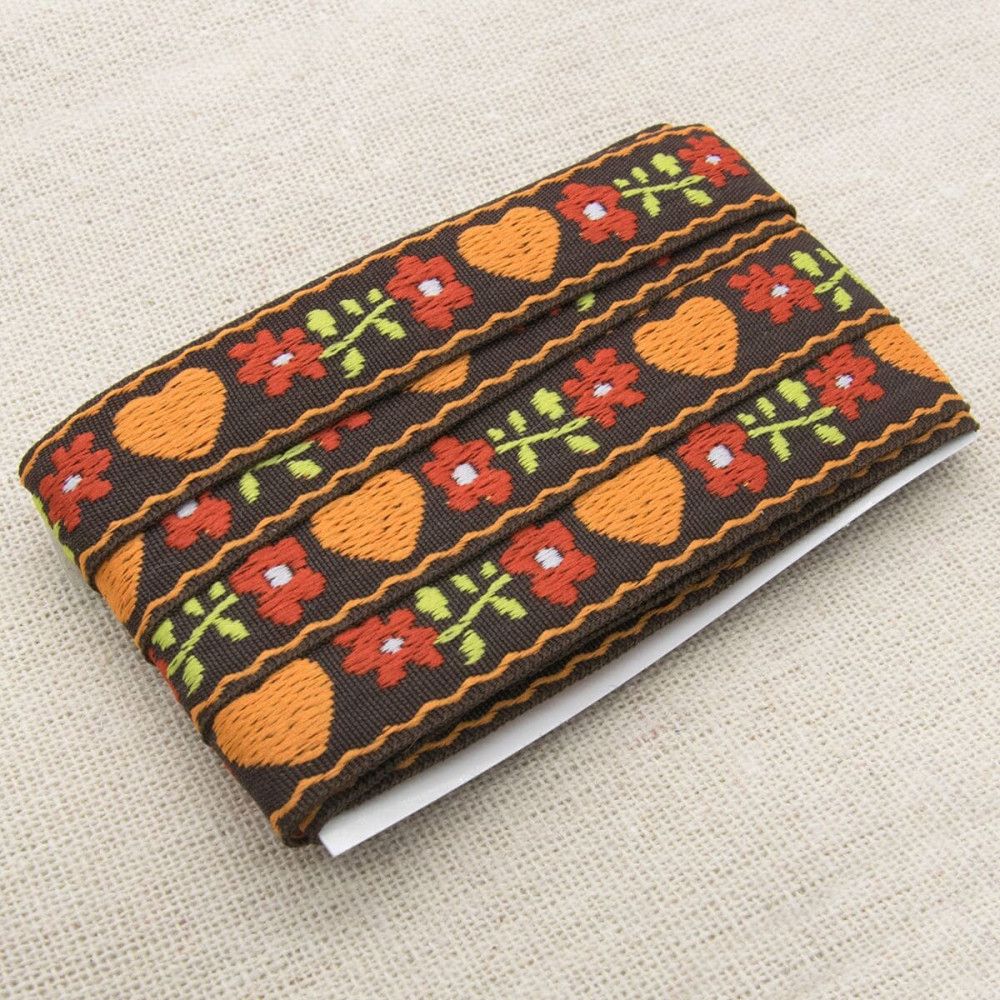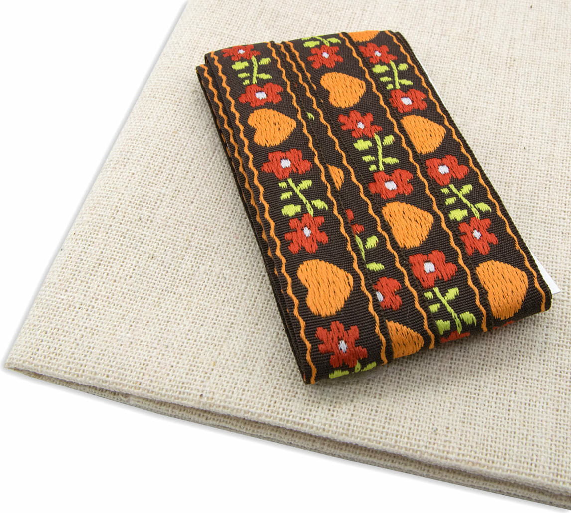 Лоскут хлопчатобумажной ткани с жаккардовой тесьмой — основа для ваших поделок. Лента и ткань идеально сочетаются между собой по цвету и рисунку.