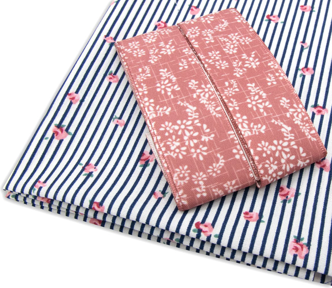 Лоскут хлопчатобумажной ткани с лентой — основа для ваших поделок. Лента и ткань идеально сочетаются между собой по цвету и рисунку.
