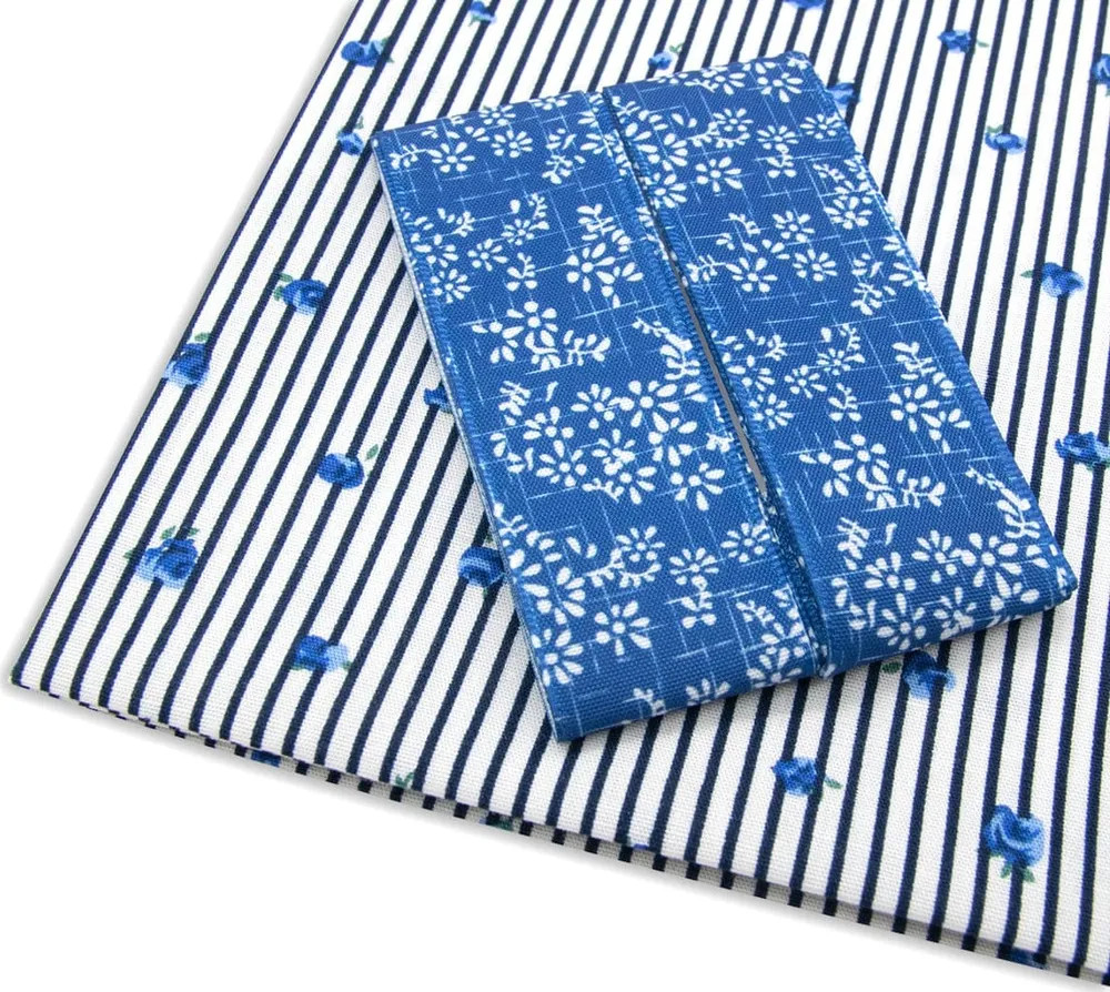 Лоскут хлопчатобумажной ткани с лентой — основа для ваших поделок. Лента и ткань идеально сочетаются между собой по цвету и рисунку.