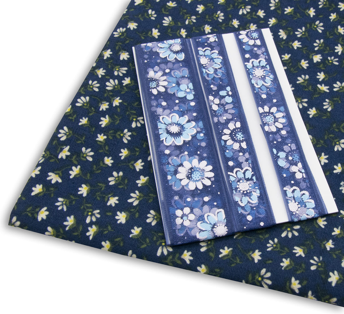 Лоскут хлопчатобумажной ткани с лентой — основа для ваших поделок. Лента и ткань идеально сочетаются между собой по цвету и рисунку.