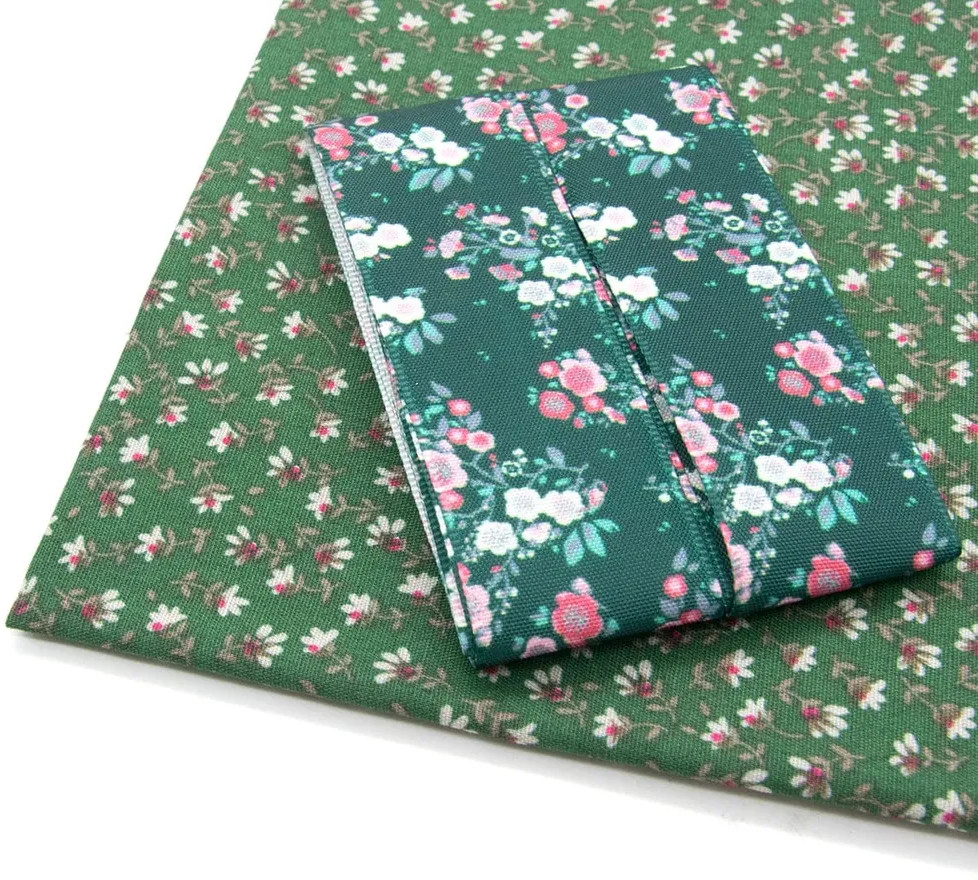 Лоскут хлопчатобумажной ткани с лентой — основа для ваших поделок. Лента и ткань идеально сочетаются между собой по цвету и рисунку.