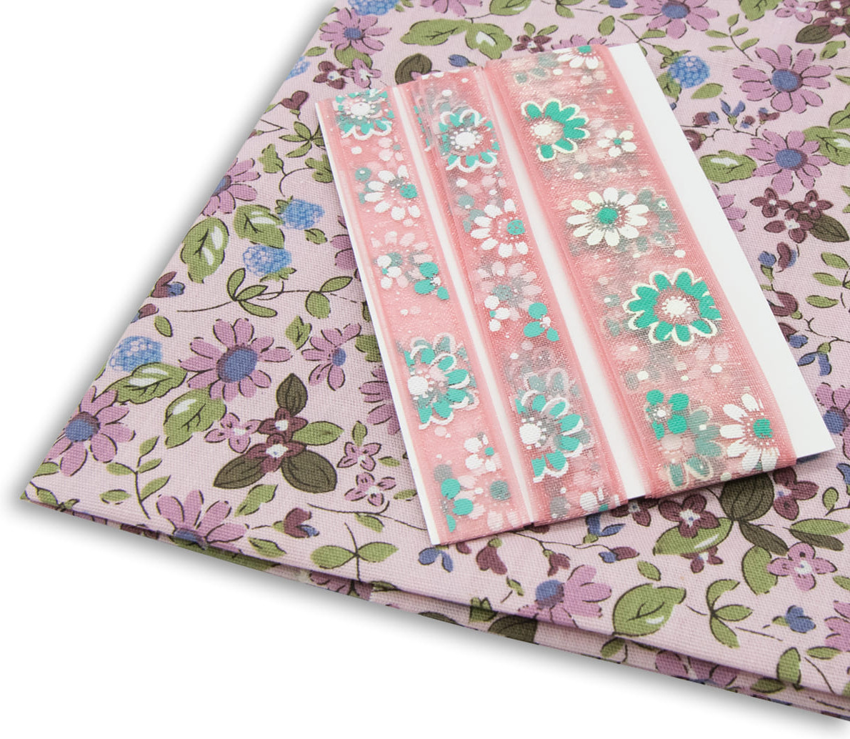 Лоскут хлопчатобумажной ткани с лентой — основа для ваших поделок. Лента и ткань идеально сочетаются между собой по цвету и рисунку.