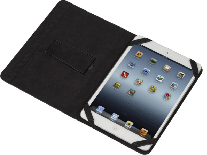 • планшет фиксируется в одном положении в режиме просмотра с помощью специальной подставки; Подставка, когда не используется, удерживается на внутренней стороне чехла с помощью магнита, не царапая корпус планшета;