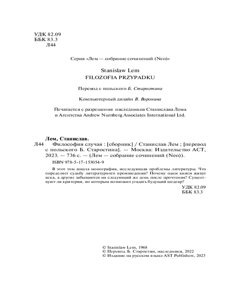 | Философия случая Станислав Лем