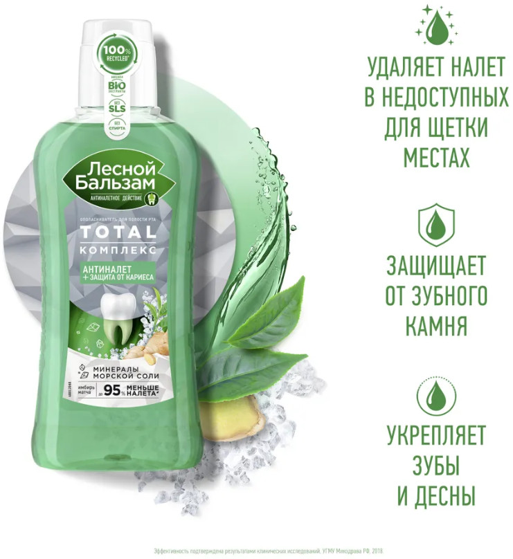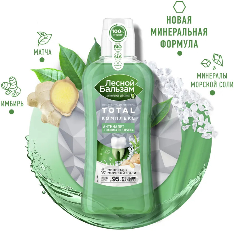 Лесной бальзам Ополаскиватель для полости рта с морской солью имбирем и чаем матча