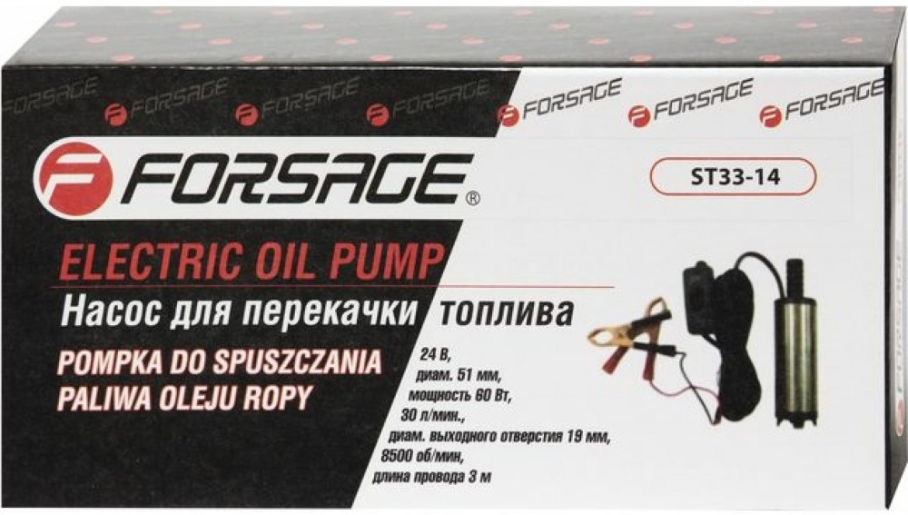 Насос Forsage F-ST33-14 применяется автолюбителями для замены моторного масла. Откачка масла осуществляется через щуп двигателя. Для увеличения производительности необходимо немного прогреть двигатель в холодное время года.