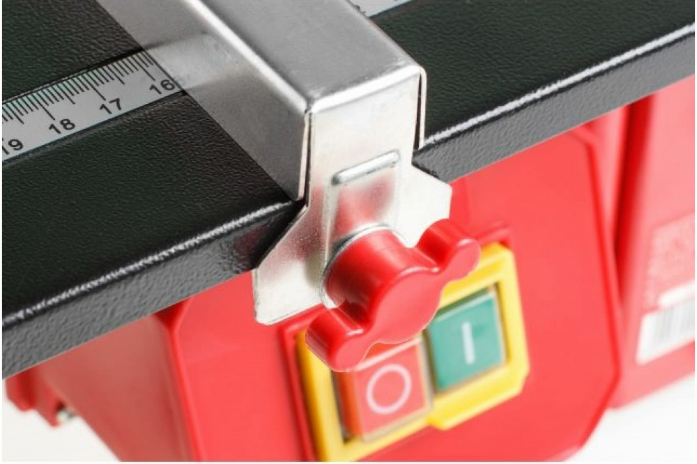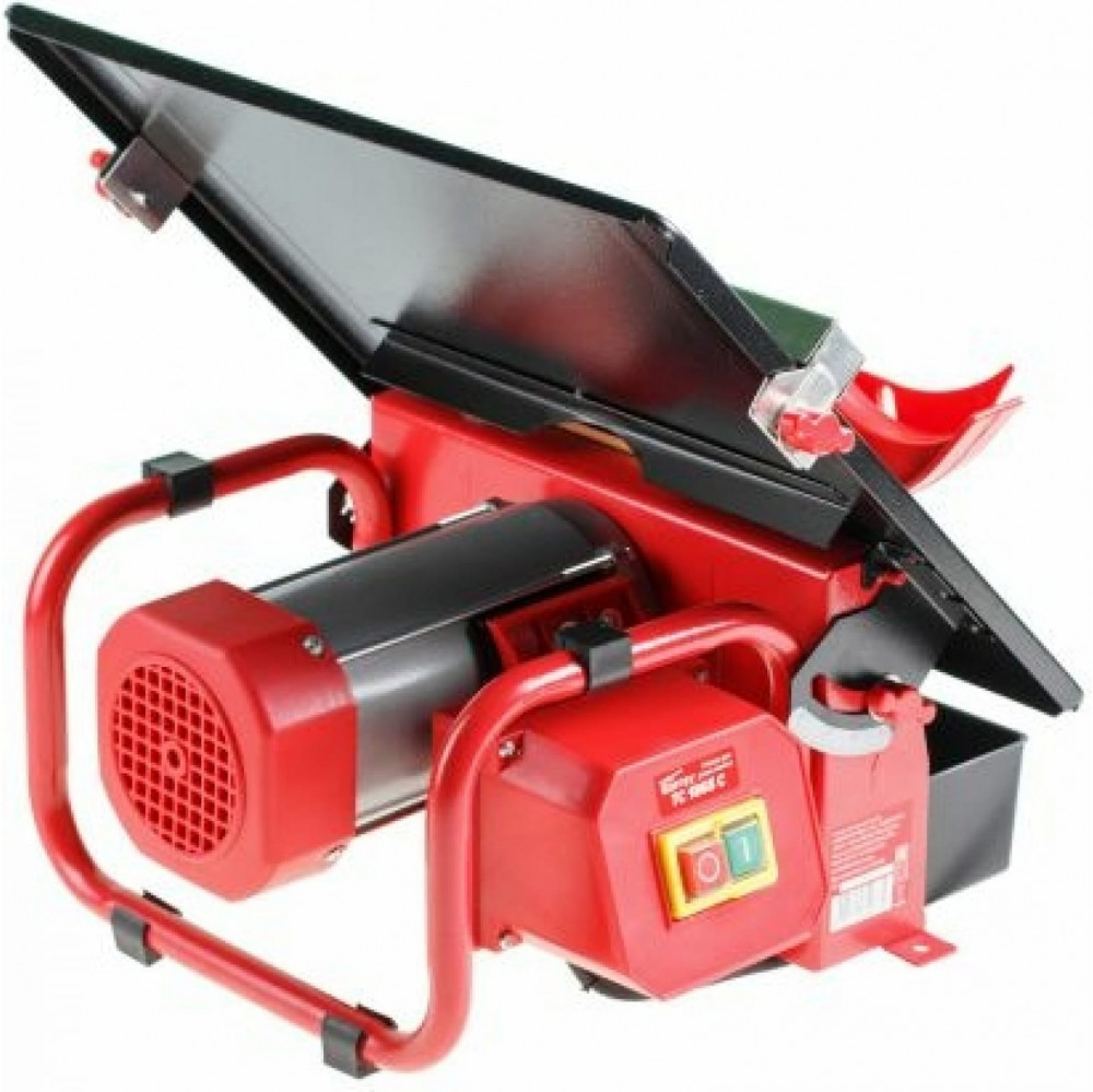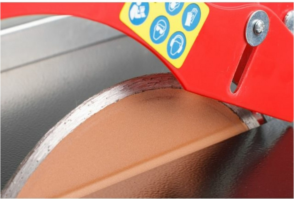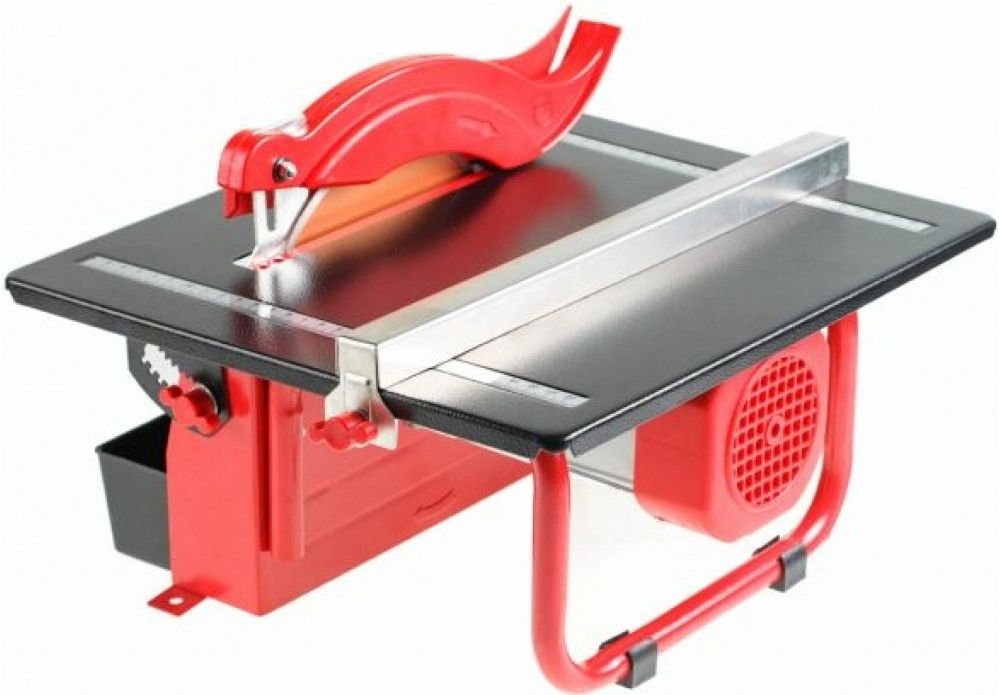 Электрический плиткорез предназначен для резки натуральной и искусственной керамической, облицовочной, напольной и тротуарной плиток под прямым углом и углом 45°. Модель имеет водную систему охлаждения. Диск частично погружен в воду в лотке. За счет вращения, вода распределяется по диску, благодаря чему он нагревается даже при длительном использовании станка. Станок имеет прочное основание и рамную конструкцию, благодаря чему устойчив на рабочей поверхности. Отличается простотой конструкции и использования.