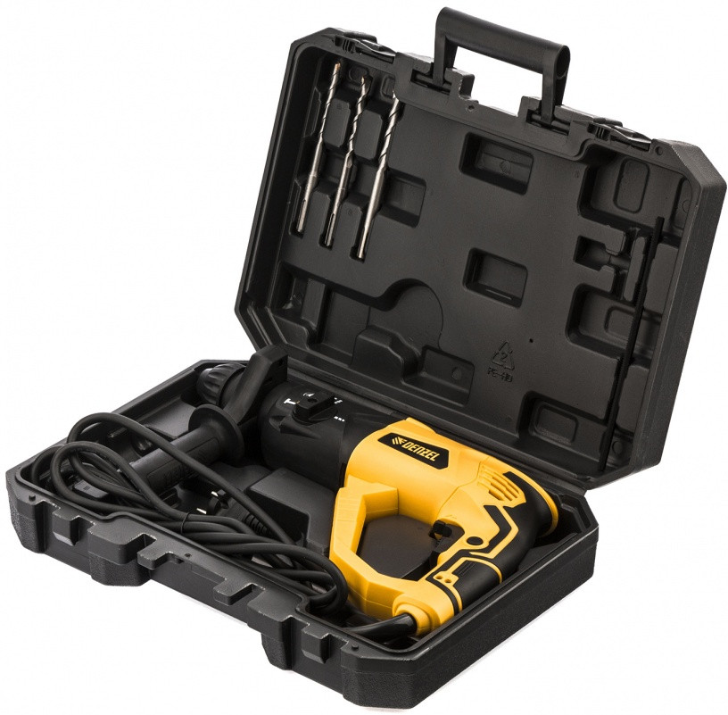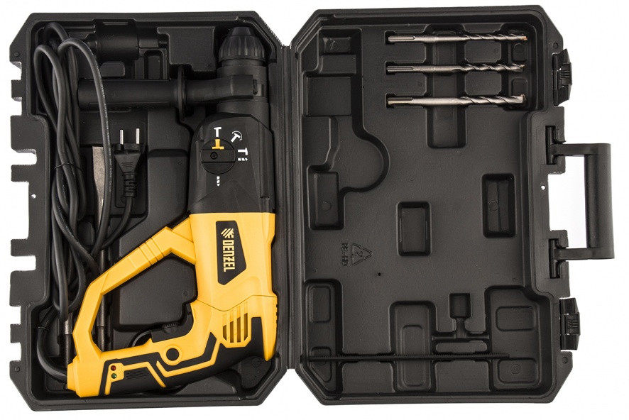 Denzel Перфоратор электрический RHV-1050-26В данный момент этот товар отсутствует в продаже. Возможно, у нас найдется аналогичный или похожий товар здесь. Перфоратор Denzel RH-1050-26 заменяет сразу несколько инструментов за счет наличия 3 режимов работы: бурение, сверление без удара, долбление. Подходит для таких работ как демонтаж материалов, штробление кабель-каналов и сверление отверстий. За счет высокой эффективности и небольшого веса 3,4 кг идеален для работы в труднодоступных местах. |