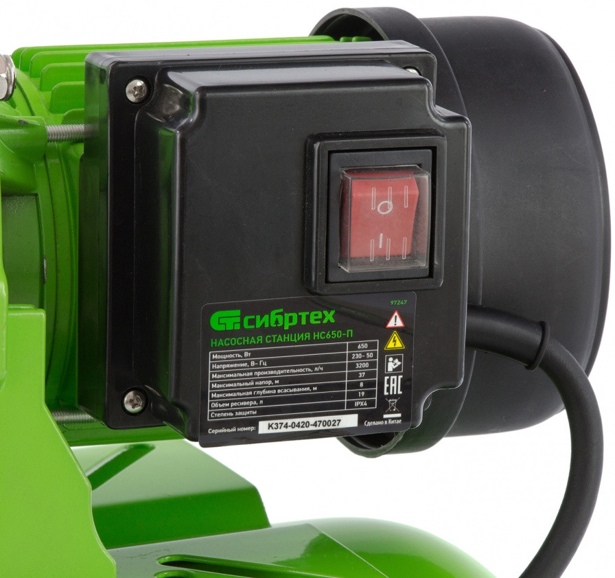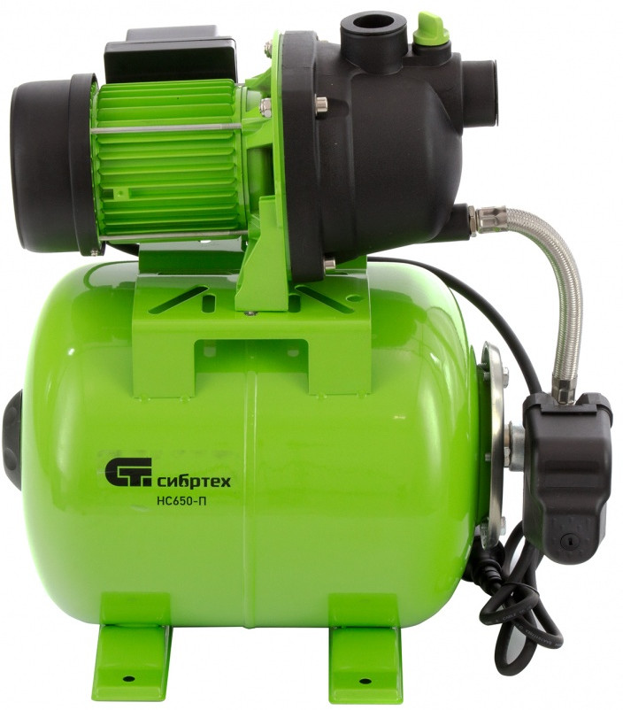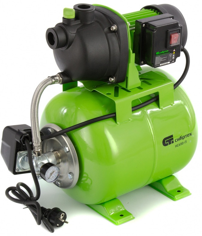 Насосная станция Сибртех НС650-П мощностью 650 Вт, с ресивером на 19 л, обеспечивает напор воды до 37 м и применяется для организации водоснабжения в частных домах и дачных коттеджах. Также подходит для стабилизации напора воды в квартирах. Надежный электродвигатель на 650 Вт обеспечивает скорость перекачивания до 53 л/мин под давлением до 2,8 бар.