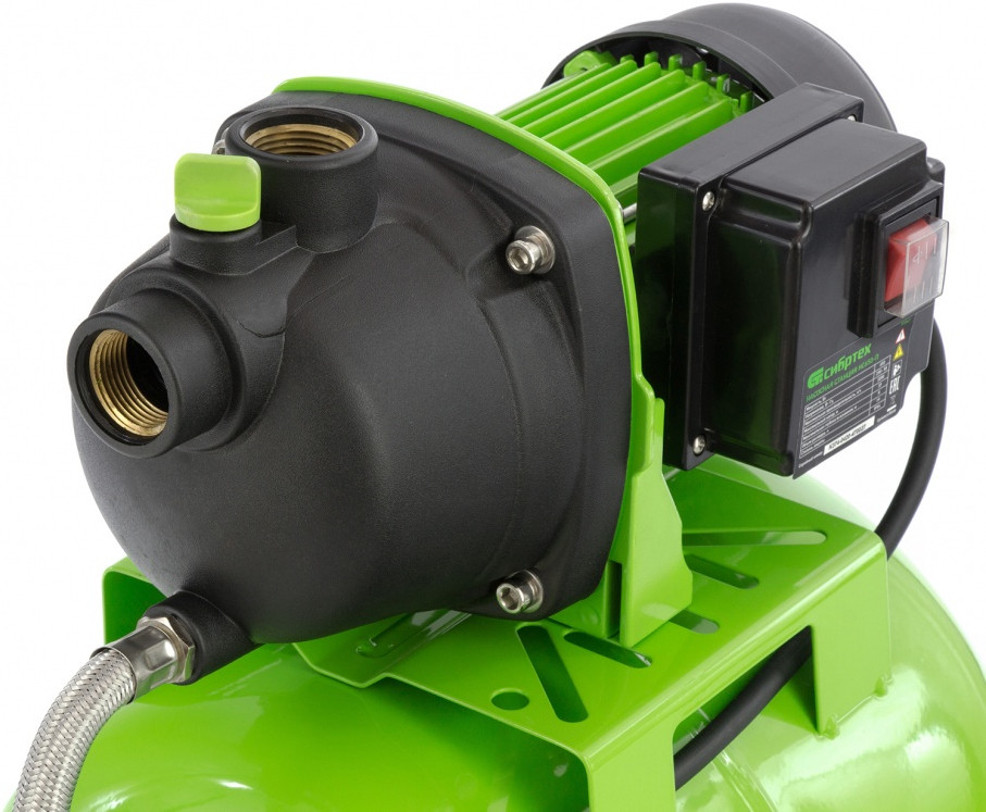 Насосная станция оснащена ресивером, поэтому двигатель включается только после израсходования накопленного запаса воды. Автоматизация рабочего процесса позволяет разумно потреблять как воду, так и электроэнергию.