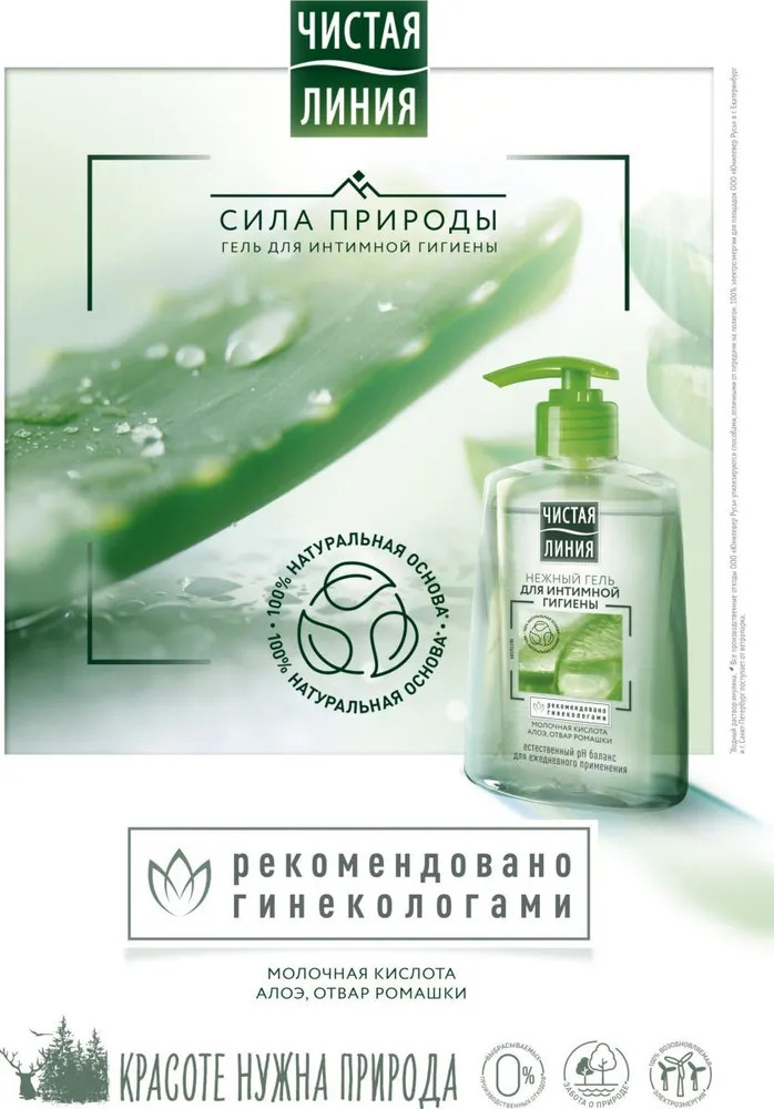Чистая линия Гель для интимной гигиены с молочной кислотой+37 аромат пена