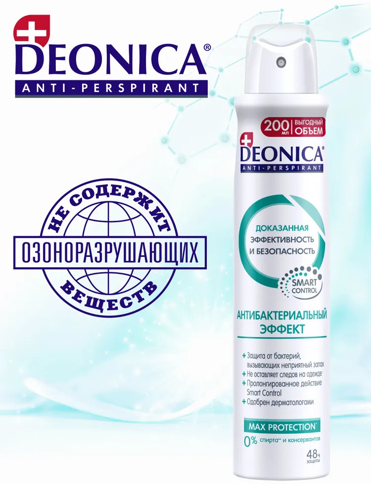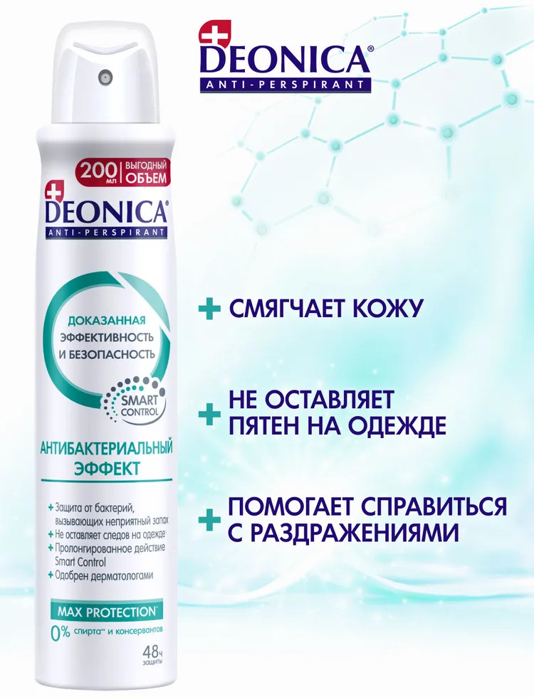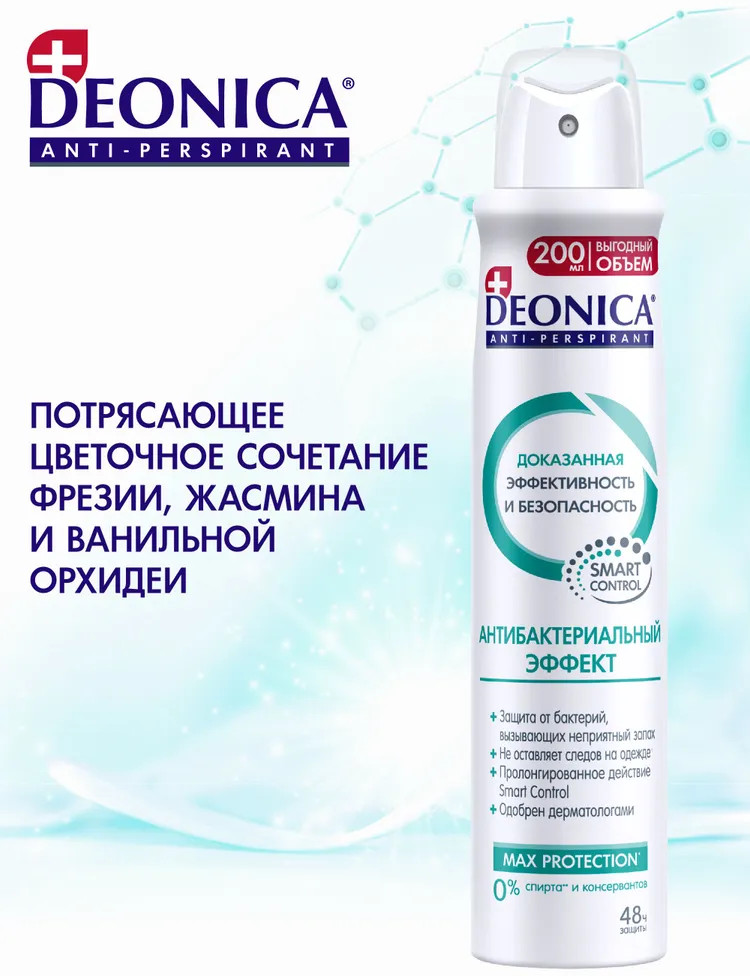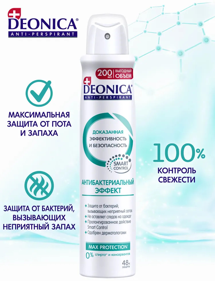 Deonica Дезодорант «Антибактериальный эффект»-20% +43 приятный аромат не оставляет следов экономичный устраняет запах не блокирует пот