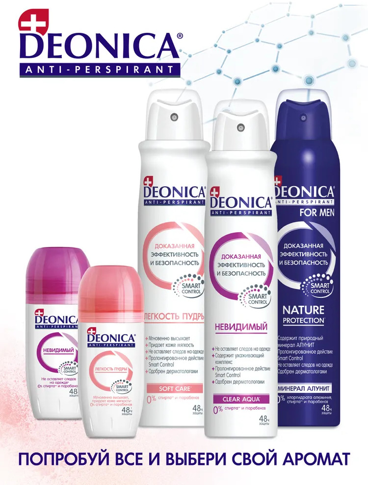 Deonica Дезодорант «Невидимый»-20% +45 приятный запах качественный повторная покупка знакомый аромат эффективная защита