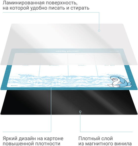 Meshu Планер магнитный с маркером «Marine style»В данный момент этот товар отсутствует в продаже. Возможно, у нас найдется аналогичный или похожий товар здесь. Магнитный планер на неделю MESHU Marine style — отличный помощник в планировании времени. Планер формата А4 выполнен из картона плотностью 200 г/м2, покрытого магнитным винилом. Ламинация позволяет многократно писать и стирать надписи. В комплекте прилагается маркер на магните со стирателем, которым очень удобно корректировать записи и крепить его к любой металлической поверхности (например, к холодильнику). Внимание! Используйте только маркер на водной основе. Для очистки поверхности используйте влажную салфетку. Планер выполнен в оригинальном универсальном дизайне. Он поможет запомнить задачи, спланировать расписание и встречи с коллегами, друзьями или семьёй. |