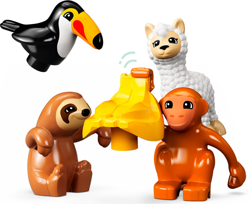LEGO (ЛЕГО) Конструктор Duplo 10973 Дикие животные Южной Америки. Wild Animals of South AmericaВ данный момент этот товар отсутствует в продаже. Возможно, у нас найдется аналогичный или похожий товар здесь. Серия: LEGO Duplo Познакомьтесь с дикой природой и фауной Южной Америки вместе со своим малышом, любящим животных. Этот универсальный и практический игровой набор полон возможностей для игры и обучения. Повстречайтесь с крокодилом, обезьянами, ленивцем, детенышем ягуара, туканом и альпакой, изучите деревья, скалы и водопад, а потом измените конфигурацию набора для новых приключений на складном трехмерном игровом коврике с джунглями. |