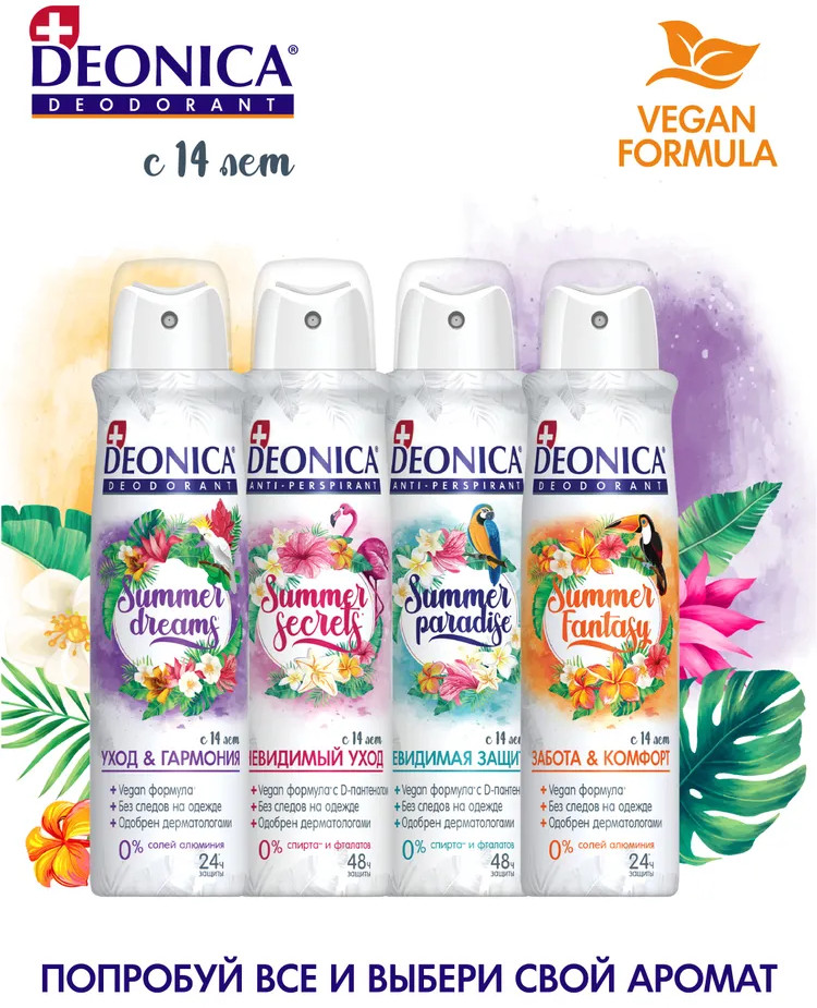 дезодорант "тропические цветы",очень резкий,больше похож на освежитель воздуха.держится долго,но такое обилие запаха - на любителя