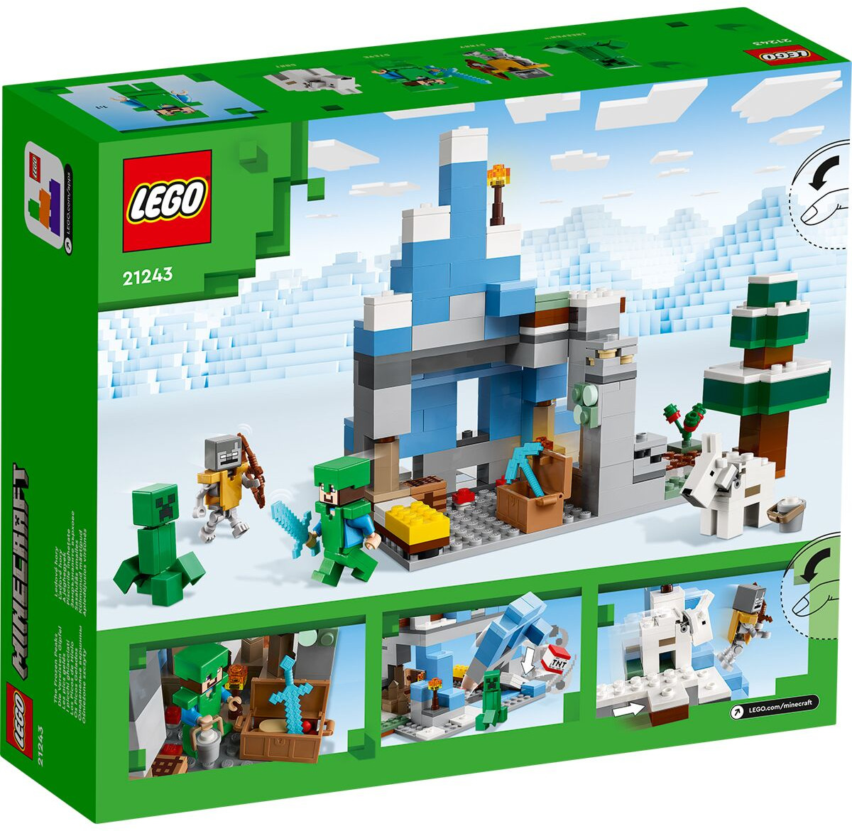 LEGO (ЛЕГО) Конструктор Minecraft 21243 Ледяные пики. The Frozen PeaksВ данный момент этот товар отсутствует в продаже. Возможно, у нас найдется аналогичный или похожий товар здесь. Серия: LEGO Minecraft Глубоко в биоме Ледяных Пиков, погребенном подо льдом, лежит уголь, железо и изумрудная руда. Прежде чем приступить к добыче полезных ископаемых, постройте убежище и соберите еду. Но берегись! Creeper и бродяга пытаются сорвать вашу миссию. Когда они атакуют, сбежите ли вы через опасную пещеру из каменных отложений, взорвете гору динамитом, чтобы добраться до своего убежища, или заставите козла протаранить их с края утеса? |