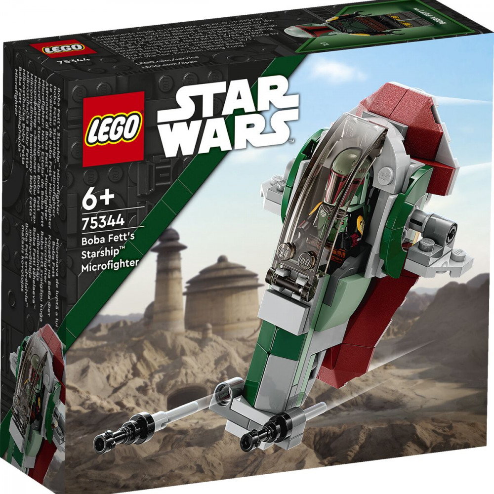LEGO (ЛЕГО) Конструктор Star Wars 75344 Звёздный корабль Бобы Фетта. Boba Fett's Starship™ MicrofighterВ данный момент этот товар отсутствует в продаже. Возможно, у нас найдется аналогичный или похожий товар здесь. Серия: LEGO Star Wars: Звездные войны Постройте легендарный звездный микроистребитель Бобы Фетта с помощью набора 75344 Лего Звездные войны и объедините усилия с легендарным охотником за головами! Прыгайте в кабину и начинайте эпическое приключение. Отрегулируйте крылья для режима полета и стреляйте из стрелкового оружия по вражеским истребителям. Вернитесь на Татуин и исследуйте планету с помощью реактивного ранца. Держите при себе бластер Бобы, но помните: лучше править, заслуживая уважение, чем через страх! |